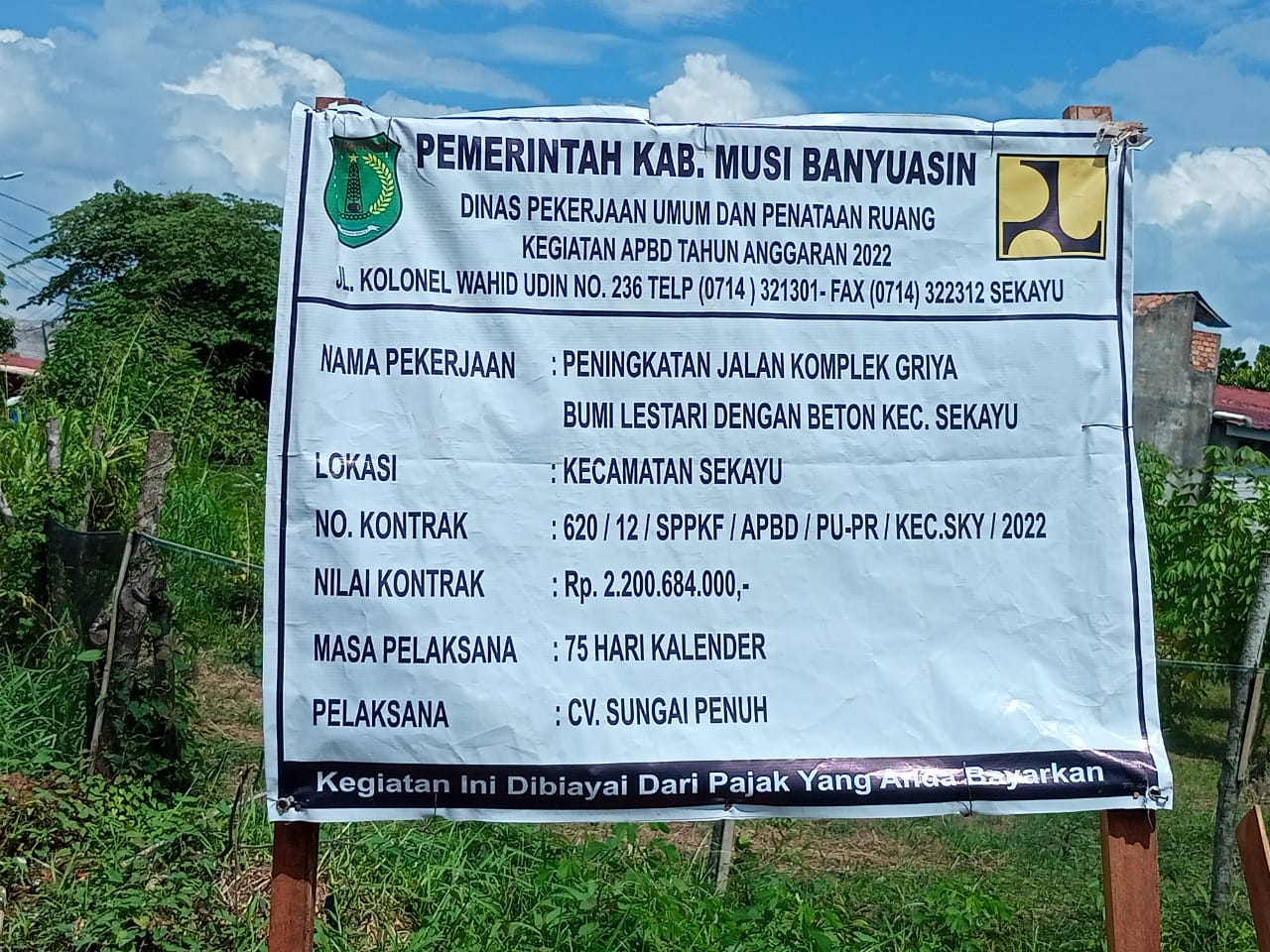 Seperti contoh yang dilaksanakan oleh CV Sungai Penuh yang saat ini sedang mengerjakan Pengerjaan Jalan Senilai Rp. 2.200.684.000,- (Dua Milyar Dua Ratus Juta Enam Ratus Delapan Puluh Empat Rupiah) berasal dari Anggaran APBD Dinas PUPR Muba.