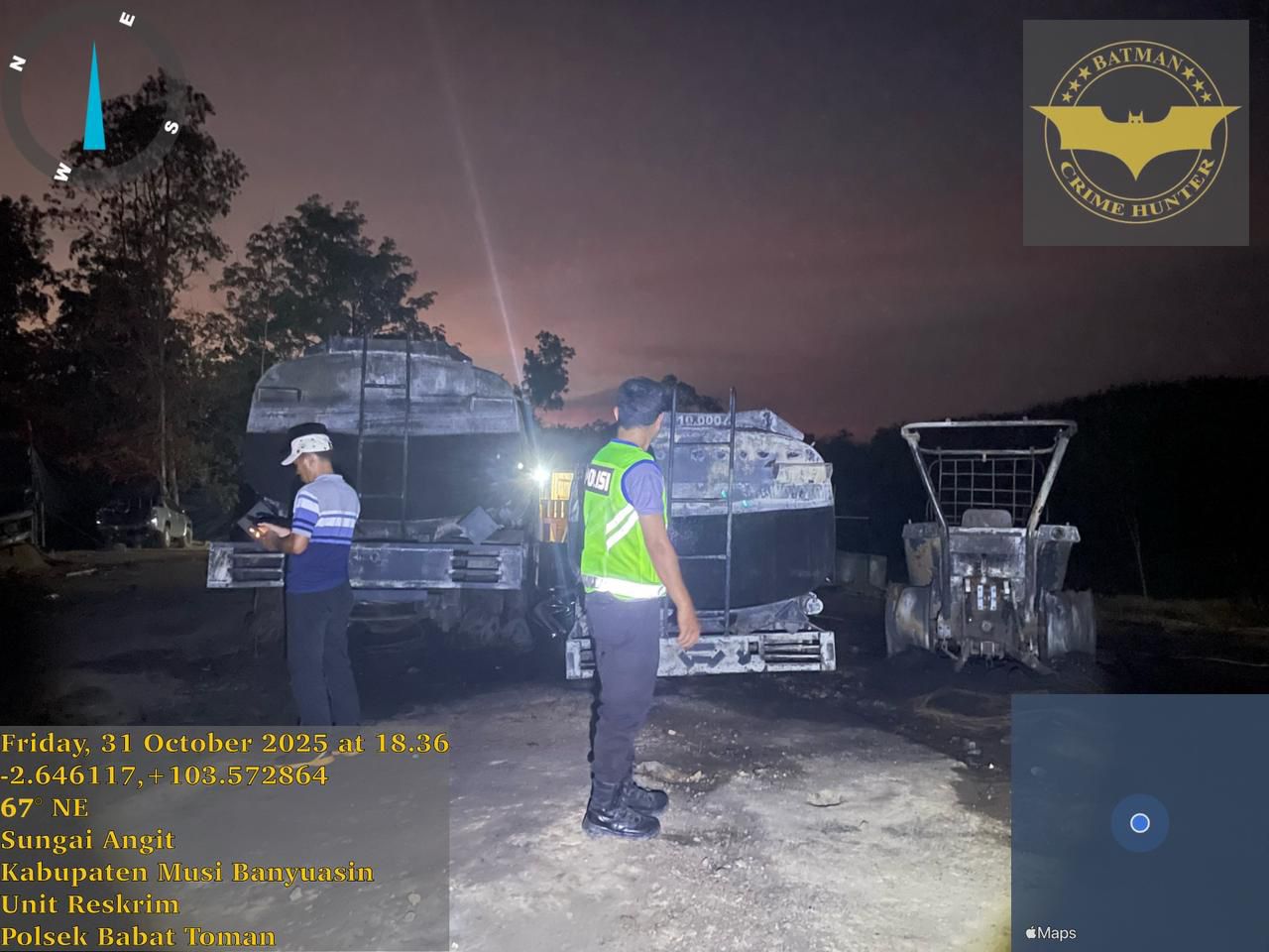 Personil Polsek Babat Toman bersama Unit Identifikasi Sat Reskrim Polres Muba segera mendatangi lokasi kejadian untuk melakukan olah tempat kejadian perkara (TKP) dan cek lapangan guna memastikan penyebab dari kebakaran tersebut.